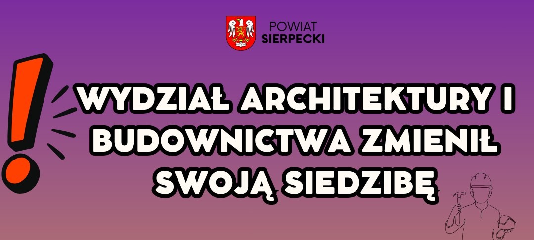 Wydział Architektury i Budownictwa zmienił swoją siedzibę od 13 kwietnia 2026r. pod adresem, ul. Świętokrzyska 2A (budynek Starostwa Powiatowego w Sierpcu)